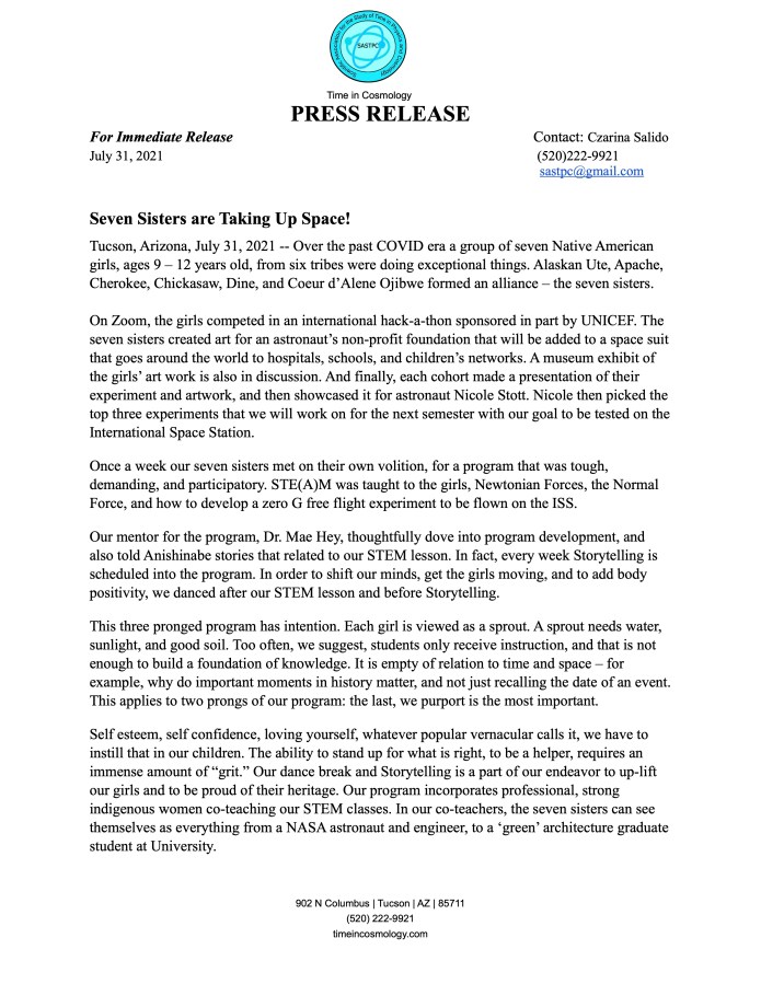 Over the past COVID era a group of seven Native American girls, ages 9 – 12 years old, from six tribes were doing exceptional things. Alaskan Ute, Apache, Cherokee, Chickasaw, Dine, and Coeur d’Alene Ojibwe formed an alliance – the seven sisters.
